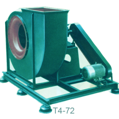 一、风机产品概述 1.风机的用途 T4-72型离心风机一般用于工厂或较大建筑物的通风换气,它既可输入气体,也可输出气体。它输送的气体为空气或其他不自燃、不挥发、对人体无害、对钢铁材料无腐蚀之气体。气体内不得含粘性物质,所含尘土及硬质颗粒物不大于150mg/m 3 。气体温度不得超过80°C。 风机可制成右旋和左旋两种型式。从电机一端正视,叶轮顺时针旋转者称右旋风机,以“右”表示,反之称左旋风机,以“左”表示。 2.风机的型式 风机可制成右旋和左旋两种型式。从电机一端正视,叶轮顺时针旋转者称右旋风机,以“右”表示,反之称左旋风机,以“左”表示。 风机的出口位置,以机壳的出风口角度表示。在用户无物要求时,№3~6在出厂时均做成一种型式:出风口位置调整范围0°~255°,间隔是45°,传动方式为A式传动;№7~12的出风口位置制成固定的三种:0°、90°、180°不能调整,订货时需注明。 3.风机的结构 №3~6风机主要由叶轮、机壳、进风口等部分配直联电机组成;№7~12除具有上述部分外,还有传动部分。 (1)叶轮:由10个后倾圆弧薄板型叶片、曲线型前盘和平板后盘组成,均用钢板制造,并经动、静平衡校正和超速运转实验,空气性能良好,效率高,运转平稳可靠。 (2)机壳:其中№3~12机壳制成整体;№14~20的机壳制成二开式,沿中分水平面分为两半外,用螺栓连接。 (3)进风口:制成整体结构,用螺栓固定于风机一侧,与轴向平行的截面为曲线形,它能使气流顺畅时入叶轮,且损失较小。 (4)传动:由主轴、轴承箱、流动轴承、皮带轮组成。